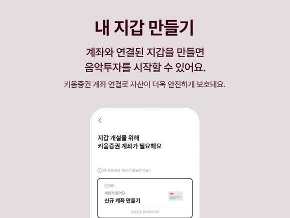 뮤직카우의 내 지갑은 키움증권 계좌와 연결되어, 고객님의 자산이 더욱 안전하게 보호되고 있어요.